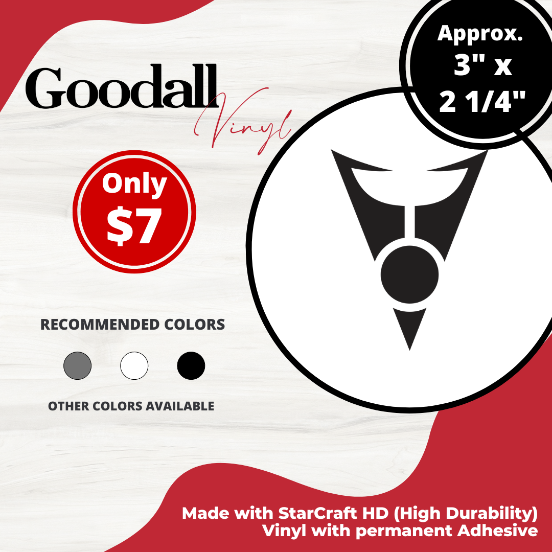 Cut from solid color StarCraft HD (High Durability) Vinyl with Permanent Adhesive.